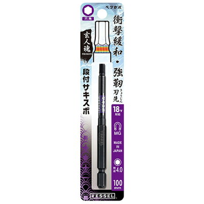 サキスボ ヘックスビット (ベッセル) くびれ部のクッション効果でビットの跳ねを抑え、トーション部がネジ着座時の衝撃を吸収するダブルの効果で使いやすく高耐久。