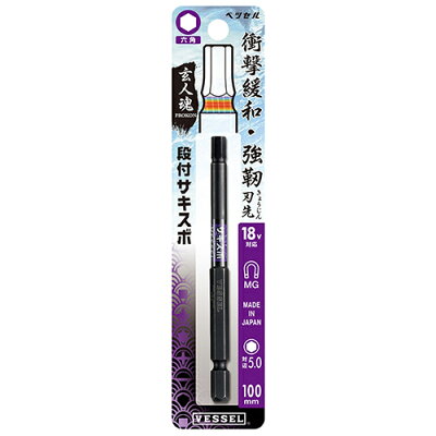 サキスボ ヘックスビット (ベッセル) くびれ部のクッション効果でビットの跳ねを抑え、トーション部がネジ着座時の衝撃を吸収するダブルの効果で使いやすく高耐久。